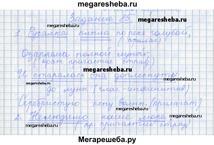 Подробный решебник (ГДЗ) по Русскому языку за 7 (седьмой) класс рабочая тетрадь - готовый ответ задание - 85. Авторы учебника: Бабайцева, Сергиенко, Углубленный уровень. Издательство: Дрофа 2017.
