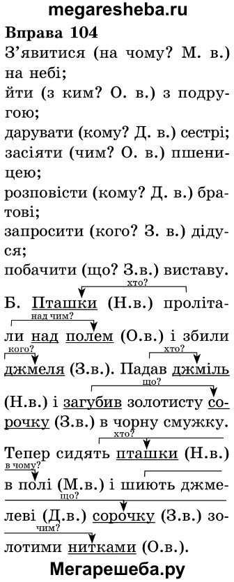 Подробный решебник (ГДЗ) по Украинскому языку за 4 (четвертый) класс - готовый ответ упражнение - 104. Авторы учебника: Хорошковська, Воскресенская, Свашенко. Издательство: Освiта .