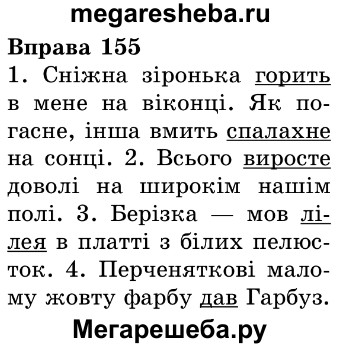 Подробный решебник (ГДЗ) по Украинскому языку за 4 (четвертый) класс - готовый ответ упражнение - 155. Авторы учебника: Хорошковська, Воскресенская, Свашенко. Издательство: Освiта .