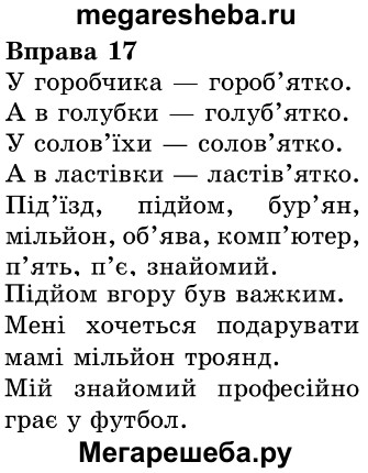 Подробный решебник (ГДЗ) по Украинскому языку за 4 (четвертый) класс - готовый ответ упражнение - 17. Авторы учебника: Хорошковська, Воскресенская, Свашенко. Издательство: Освiта .