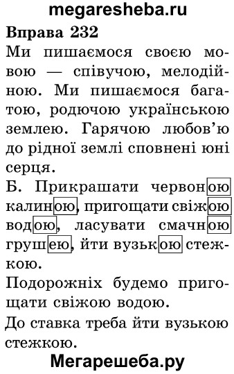 Подробный решебник (ГДЗ) по Украинскому языку за 4 (четвертый) класс - готовый ответ упражнение - 232. Авторы учебника: Хорошковська, Воскресенская, Свашенко. Издательство: Освiта .
