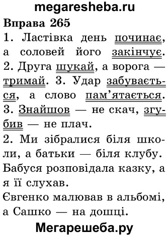 Подробный решебник (ГДЗ) по Украинскому языку за 4 (четвертый) класс - готовый ответ упражнение - 265. Авторы учебника: Хорошковська, Воскресенская, Свашенко. Издательство: Освiта .