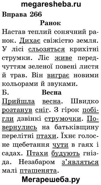 Подробный решебник (ГДЗ) по Украинскому языку за 4 (четвертый) класс - готовый ответ упражнение - 266. Авторы учебника: Хорошковська, Воскресенская, Свашенко. Издательство: Освiта .