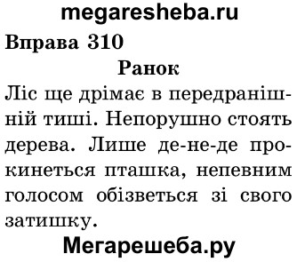 Подробный решебник (ГДЗ) по Украинскому языку за 4 (четвертый) класс - готовый ответ упражнение - 310. Авторы учебника: Хорошковська, Воскресенская, Свашенко. Издательство: Освiта .