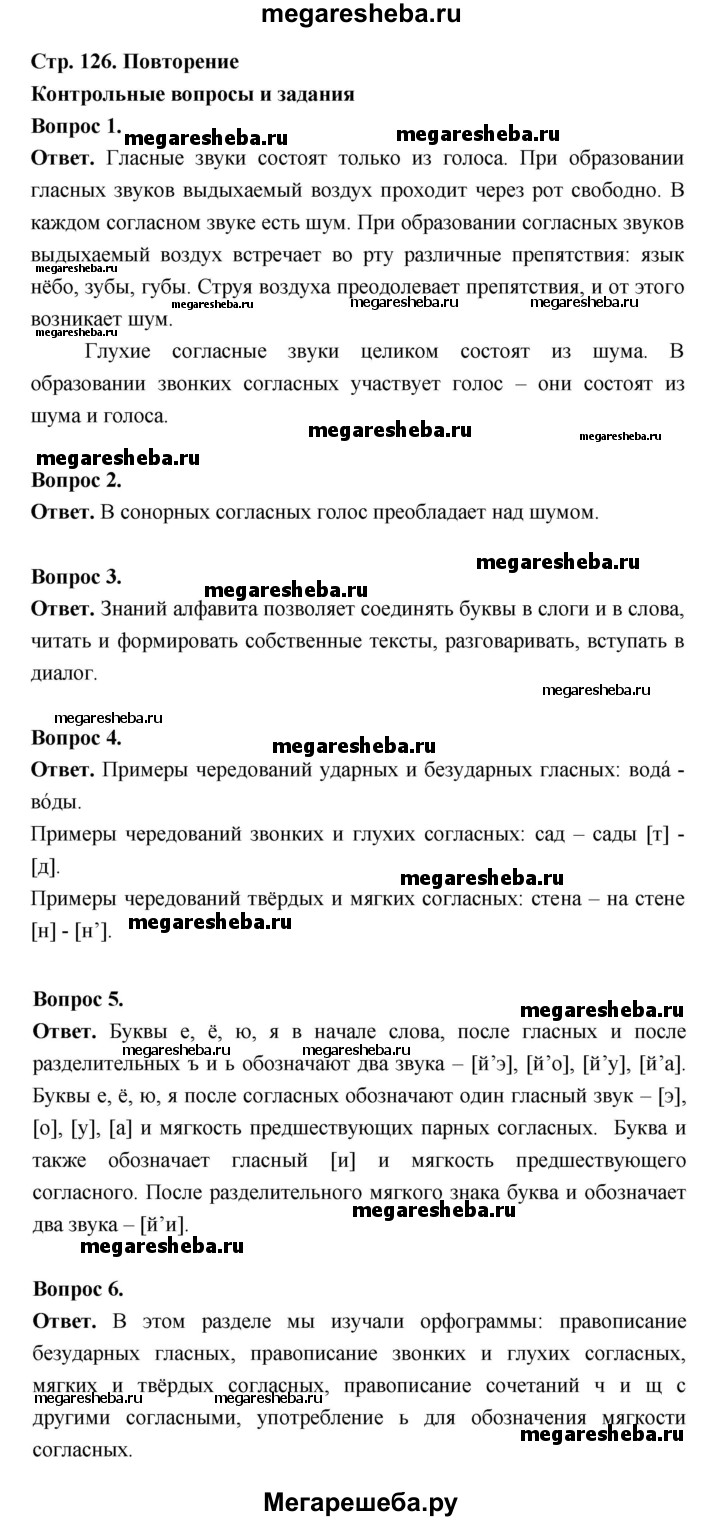 ГДЗ по русскому языку 5 класс Баранов контрольные вопросы и задания часть 1 - стр. 126