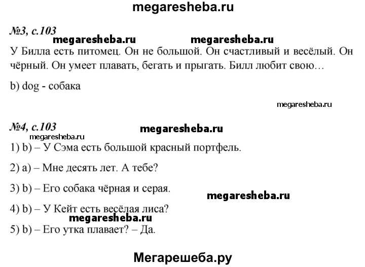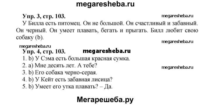 Подробный решебник (ГДЗ) по Английскому языку за 2 (второй) класс Enjoy English - готовый ответ страница - 103. Авторы учебника: Биболетова, Денисенко, Трубанева. Издательство: Дрофа 2016-2023.