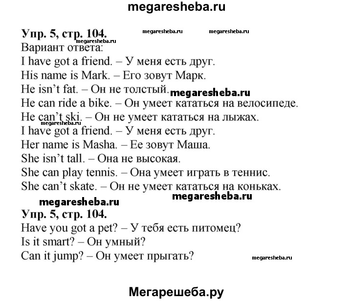 Подробный решебник (ГДЗ) по Английскому языку за 2 (второй) класс Enjoy English - готовый ответ страница - 104. Авторы учебника: Биболетова, Денисенко, Трубанева. Издательство: Дрофа 2016-2023.