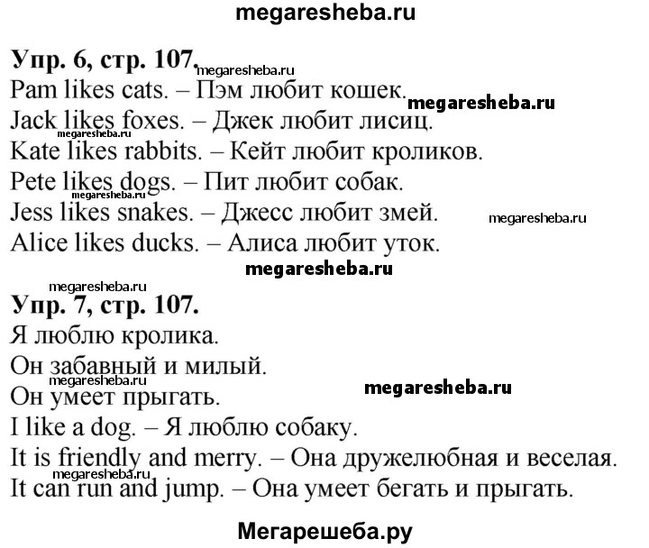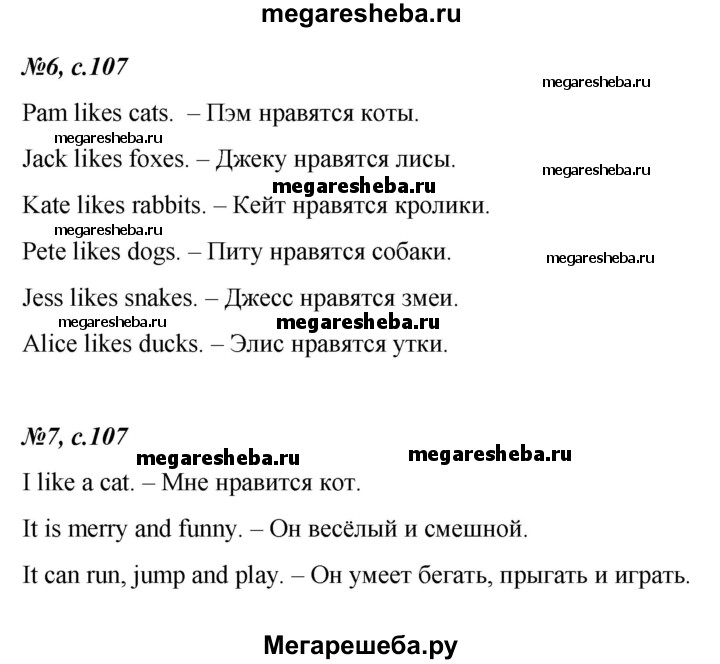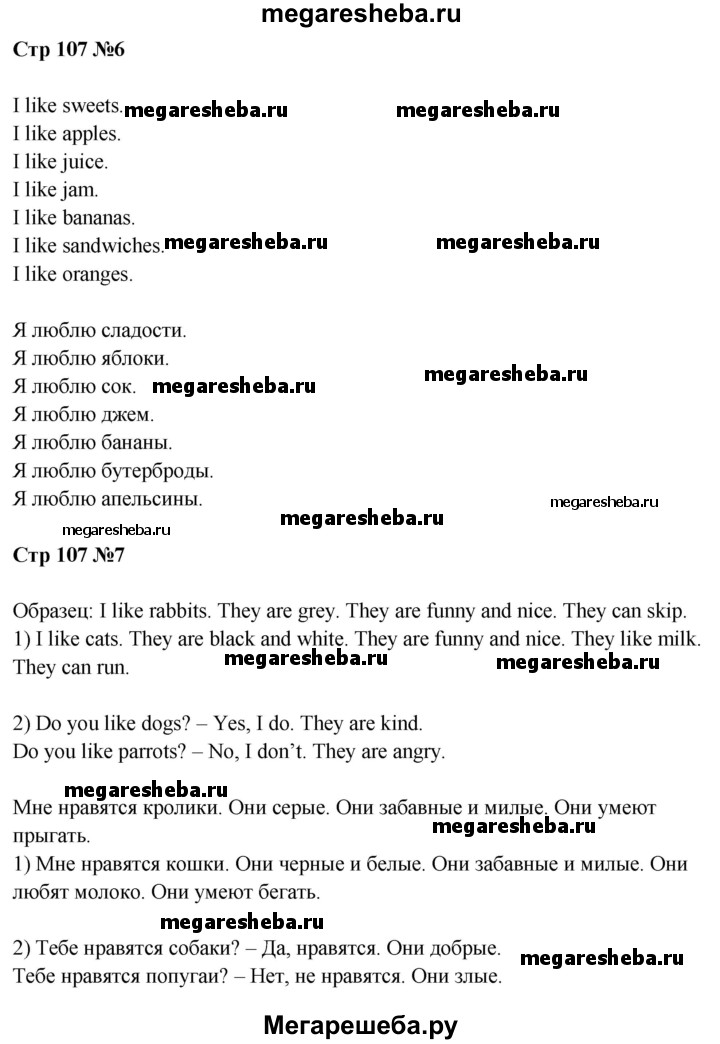 Подробный решебник (ГДЗ) по Английскому языку за 2 (второй) класс Enjoy English - готовый ответ страница - 107. Авторы учебника: Биболетова, Денисенко, Трубанева. Издательство: Дрофа 2016-2023.