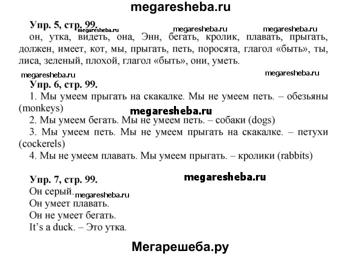 ГДЗ по английскому языку 2 класс Биболетова Enjoy English страница - 99
