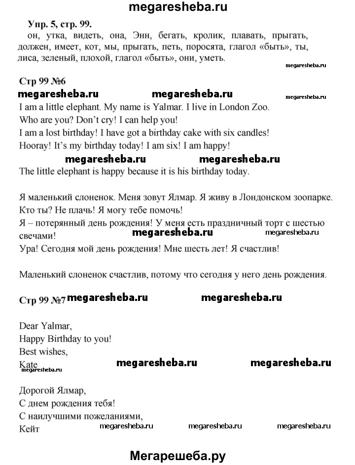 Подробный решебник (ГДЗ) по Английскому языку за 2 (второй) класс Enjoy English - готовый ответ страница - 99. Авторы учебника: Биболетова, Денисенко, Трубанева. Издательство: Дрофа 2016-2023.