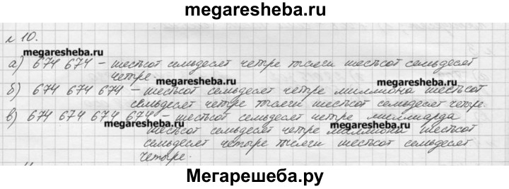 10. Прочитайте число, которое получится, если число 674 записать подряд: а) два раза; б) три раза; в) четыре раза.