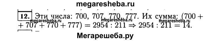 12. Запишите все трёхзначные числа, для записи которых употребляются только цифры 0 и 7. Найдите сумму этих чисел и разделите её на 211.