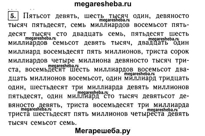 5. Прочитайте числа: 509; 6001; 90 050; 7 000 850 127; 56 000 709 000; 21 085 000 000; 340 004 090 300; 86 820 000 800; 1 000 000 031; 63 009 000 050; 1 000 100 999; 383 365 409 707.