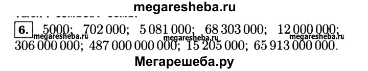6. Запишите цифрами числа: 5 тыс.; 702 тыс.; 5081 тыс.; 68 303 тыс.; 12 млн; 306 млн; 487 млрд; 15 млн 205 тыс.; 65 млрд 913 млн.