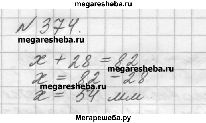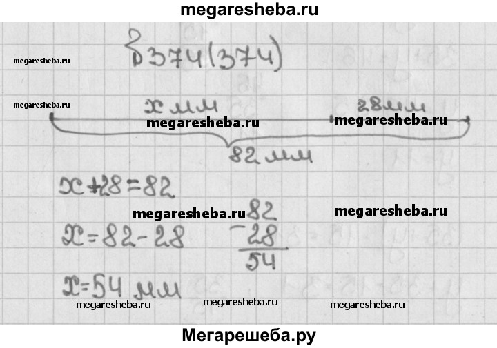 374. Составьте уравнение по рисунку 45 и решите его. х мм 28 мм 82 мм