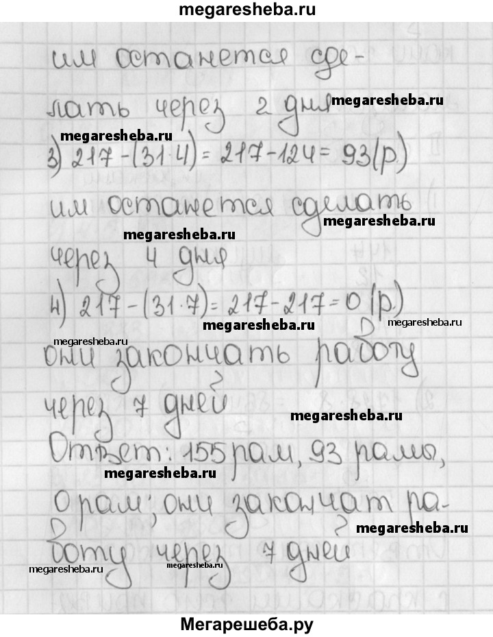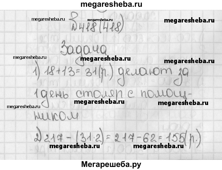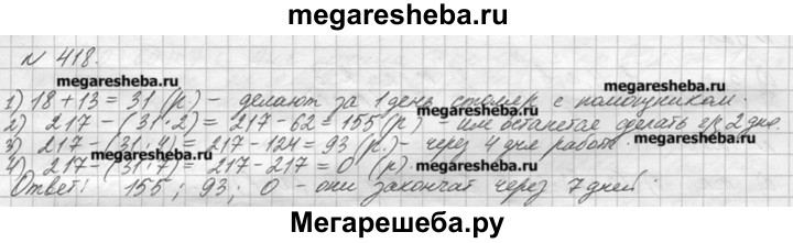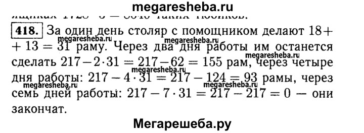 418. Столяр и его помощник должны сделать 217 рам. Столяр в день делает 18 рам, а его помощник — 13. Сколько рам им останется сделать после двух дней работы? четырёх дней работы? семи дней работы?