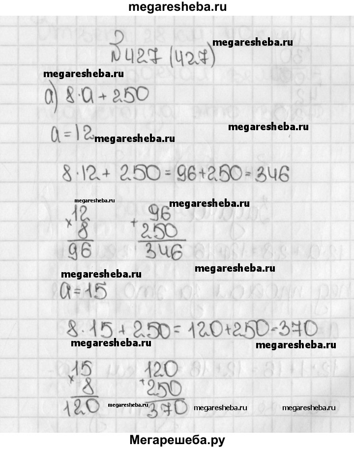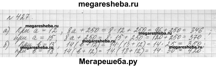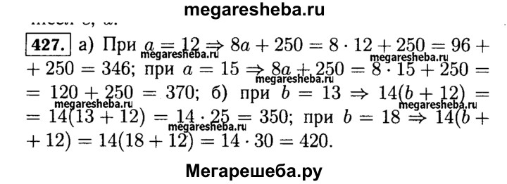 427. Найдите значение выражения: а) 8а + 250 при а = 12; 15; б) 14(Ь + 12) при Ь = 13; 18.