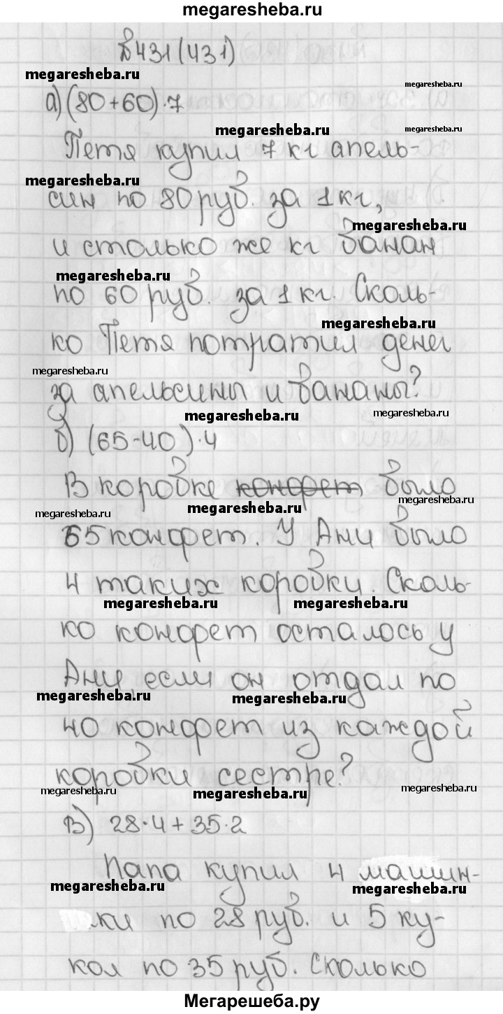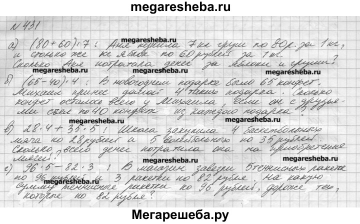 Подробный решебник (ГДЗ) по Математике за 5 (пятый) класс - готовый ответ глава 1 § 3 тема 11 - 431. Авторы учебника: Виленкин, Жохов, Чесноков, Шварцбурд. Издательство: Мнемозина 2017-2019.