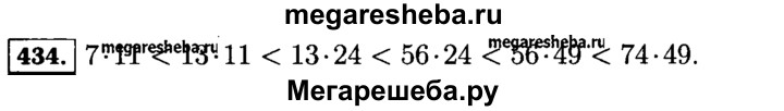 434. Не выполняя умножения, расставьте в порядке возрастания произведения: 56*24; 56*49; 13*24; 13 * 11; 74*49; 7*11.