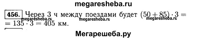 456. С одной и той же станции в одно и то же время вышли в противоположных направлениях два поезда. Скорость одного поезда 50 км/ч, а другого 85 км/ч. Какое расстояние будет между поездами через 3 ч?