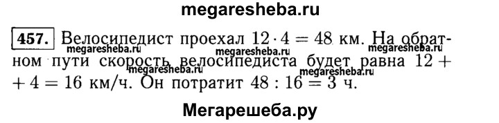 457. От деревни до города велосипедист ехал 4 ч со скоростью 12 км/ч. Сколько времени он потратит на обратный путь по той же дороге, если увеличит скорость на 4 км/ч?