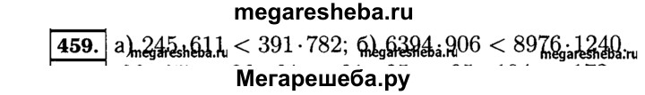 459. Сравните, не вычисляя, произведения (ответ запишите с помощью знака <): а) 245 * 611 и 391 * 782; б) 8976 * 1240 и 6394 * 906.