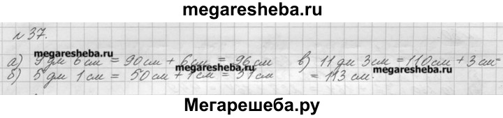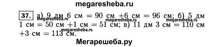 37. Выразите в сантиметрах: а) 9 дм 6 см; б) 5 дм 1 см; в) 11 дм 3 см.