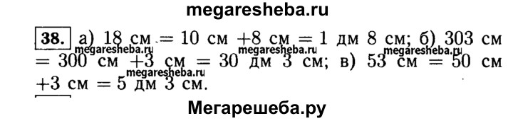 38. Выразите в дециметрах и сантиметрах: а) 18 см; б) 303 см; в) 53 см.