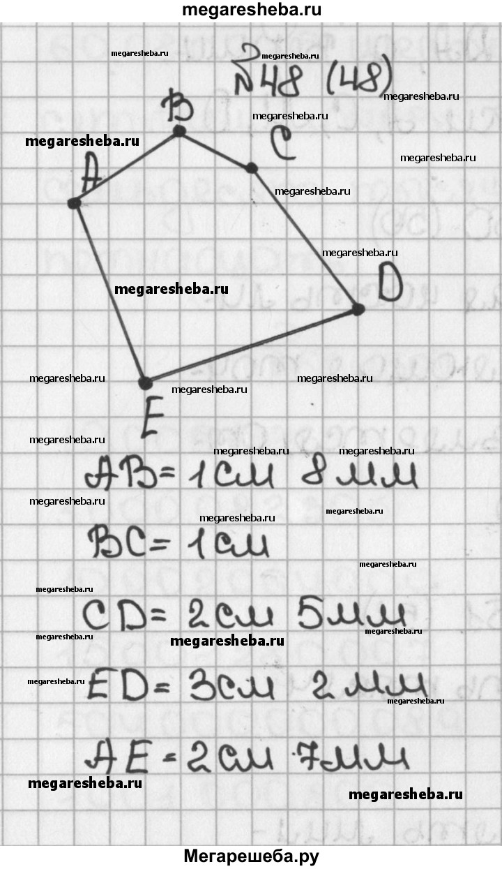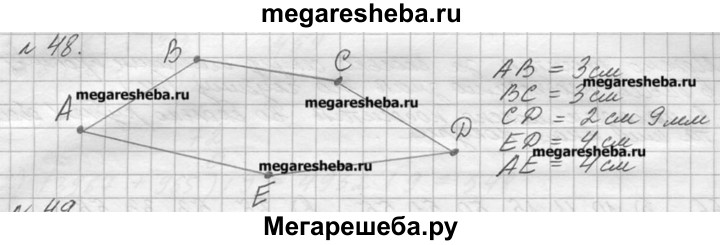 48. Постройте в тетради пятиугольник ABCDE. Измерьте его стороны и запишите результаты измерений.