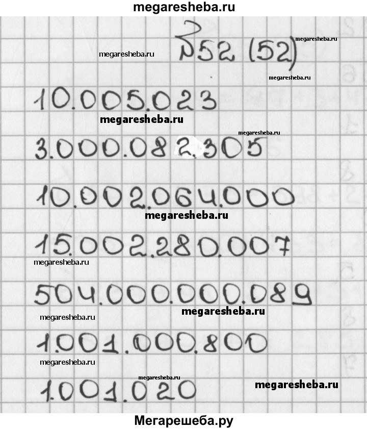Подробный решебник (ГДЗ) по Математике за 5 (пятый) класс - готовый ответ глава 1 § 1 тема 2 - 52. Авторы учебника: Виленкин, Жохов, Чесноков, Шварцбурд. Издательство: Мнемозина 2017-2019.