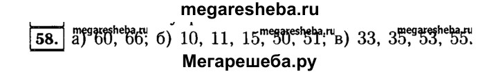 58. Какие двузначные числа можно записать с помощью цифр: а) 6 и 0; б) 1, 5 и 0; в) 3 и 5?