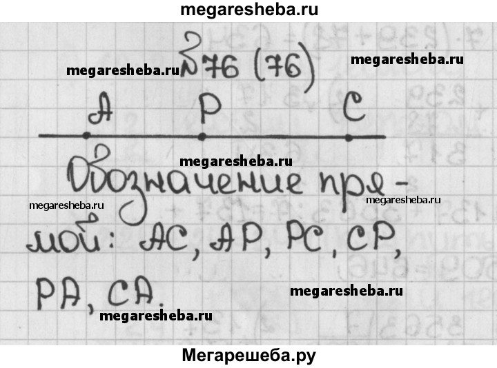 76. Начертите прямую и отметьте на ней точки А, Р и С. Запишите 6 различных обозначений прямой.