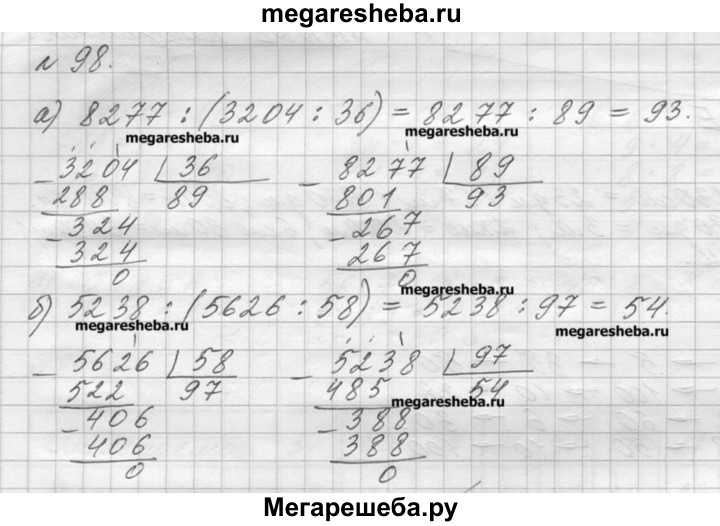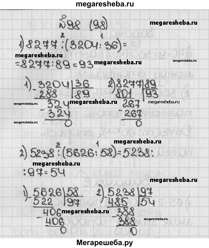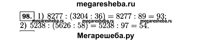 98. Выполните действия: 1) 8277 : (3204 : 36); 2) 5238 : (5626 : 58).