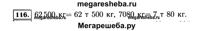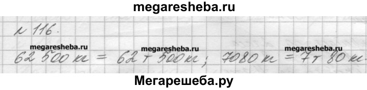 116. Выразите в тоннах и килограммах: 62 500 кг; 7080 кг.