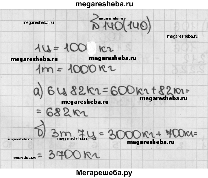 140. Выразите в килограммах: а) 6 ц 82 кг; б) 3 т 7 ц; в) 15 т 750 кг.
