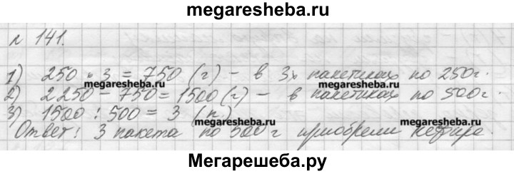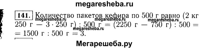 141. Купили 3 пакета кефира, по 250 г в каждом, и несколько пакетов кефира по 500 г. Сколько приобрели пакетов кефира по 500 г, если всего купили 2 кг 250 г кефира?