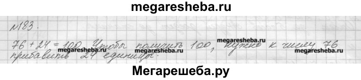 183. Найдите сумму 76 + 24. Сколько единиц надо прибавить к числу 76, чтобы получить 100?