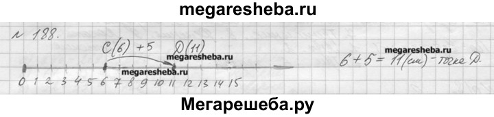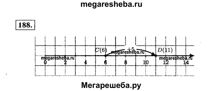 188. Начертите координатный луч и отметьте на нём точку С(6), отложите от этой точки вправо 5 единичных отрезков и отметьте точку D. Чему равна координата точки D?