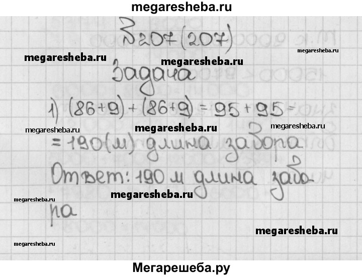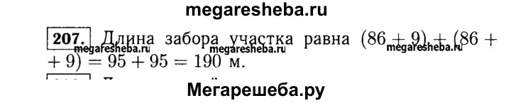 207. Длина прямоугольного садового участка 86 м, а ширина 9 м. Найдите длину забора этого участка.