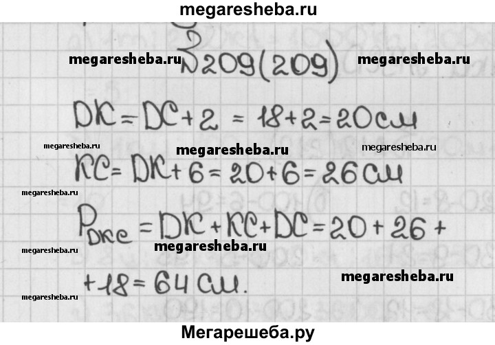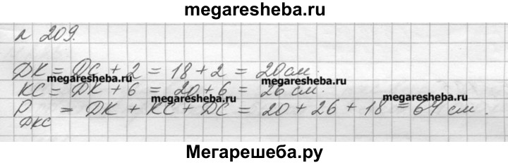 209. В треугольнике DKC сторона DK меньше стороны КС на 6 см и больше стороны DC на 2 см. Найдите периметр треугольника DKC, если DC = 18 см.