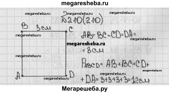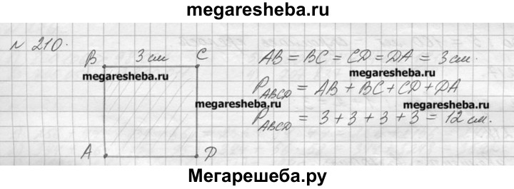 210. Начертите квадрат со стороной 3 см. Вычислите его периметр.