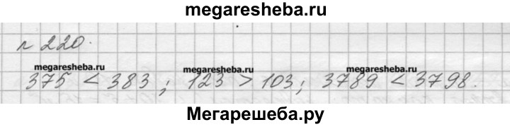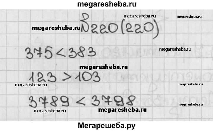 220. Сравните числа, поставив вместо звёздочки знак < или >: 375 * 383; 123 * 103; 3789 * 3798.