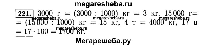 221. Выразите в килограммах: 3000 г; 15 000 г; 4 т; 17 ц.