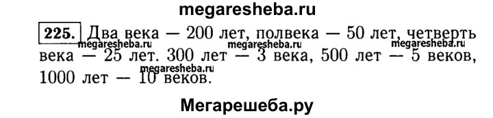 225. Сколько лет составляют два века? Полвека? Четверть века? Сколько веков составляют 300 лет? 500 лет? 1000 лет?