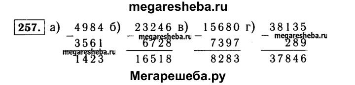 257. Замените звёздочки цифрами: а) 4*8* - *5*1 / 1423- б) *3*46 - *7*8 / 1651* в) *5*8*- 378*6 / 82*3 г) ***35 *- 5*1 – 28* / 378*6
