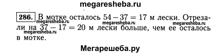 286. От мотка лески отрезали 37 м. На сколько метров лески отрезали больше, чем её осталось в мотке, если первоначально в мотке было 54 м лески?