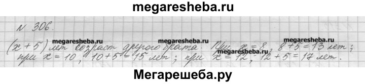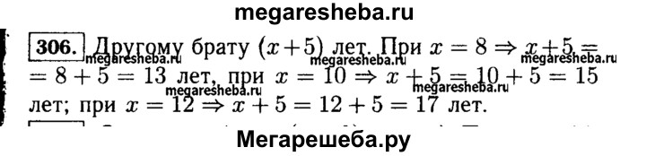 306. Одному брату х лет, а другой брат старше его на 5 лет. Сколько лет другому брату? Составьте выражение и найдите его значение при х = 8; 10; 12.