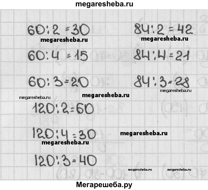 350. Найдите половину, четверть и треть каждого из чисел: 12; 36; 60; 84; 120.