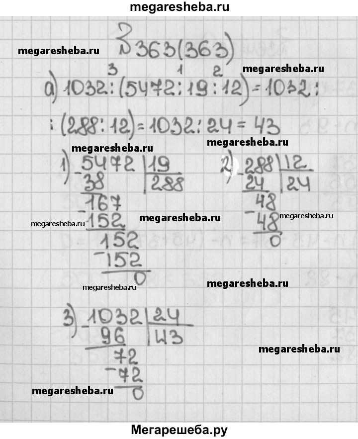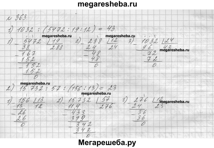 363. Найдите значение выражения: 1) 1032 : (5472 : 19 : 12); 2) 15 732 : 57 : (156 : 13).