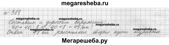 368. Турист на автобусе проехал 40 км, что в 5 раз больше того пути, который он прошёл пешком. Какой общий путь проделал турист?